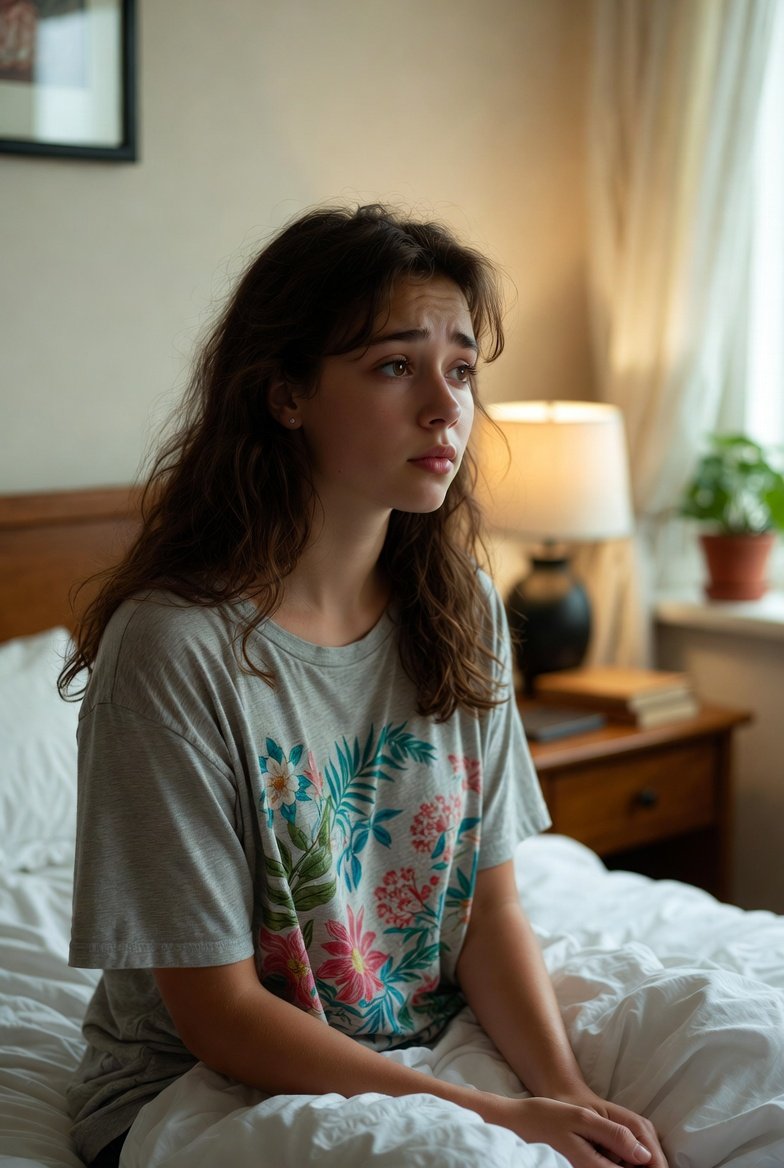 Иногда по ночам она вскакивала от резкого звука — казалось, сейчас распахнётся дверь. Сердце колотилось, ладони потели. Тогда она садилась на кровати, обхватывала себя руками и шептала: