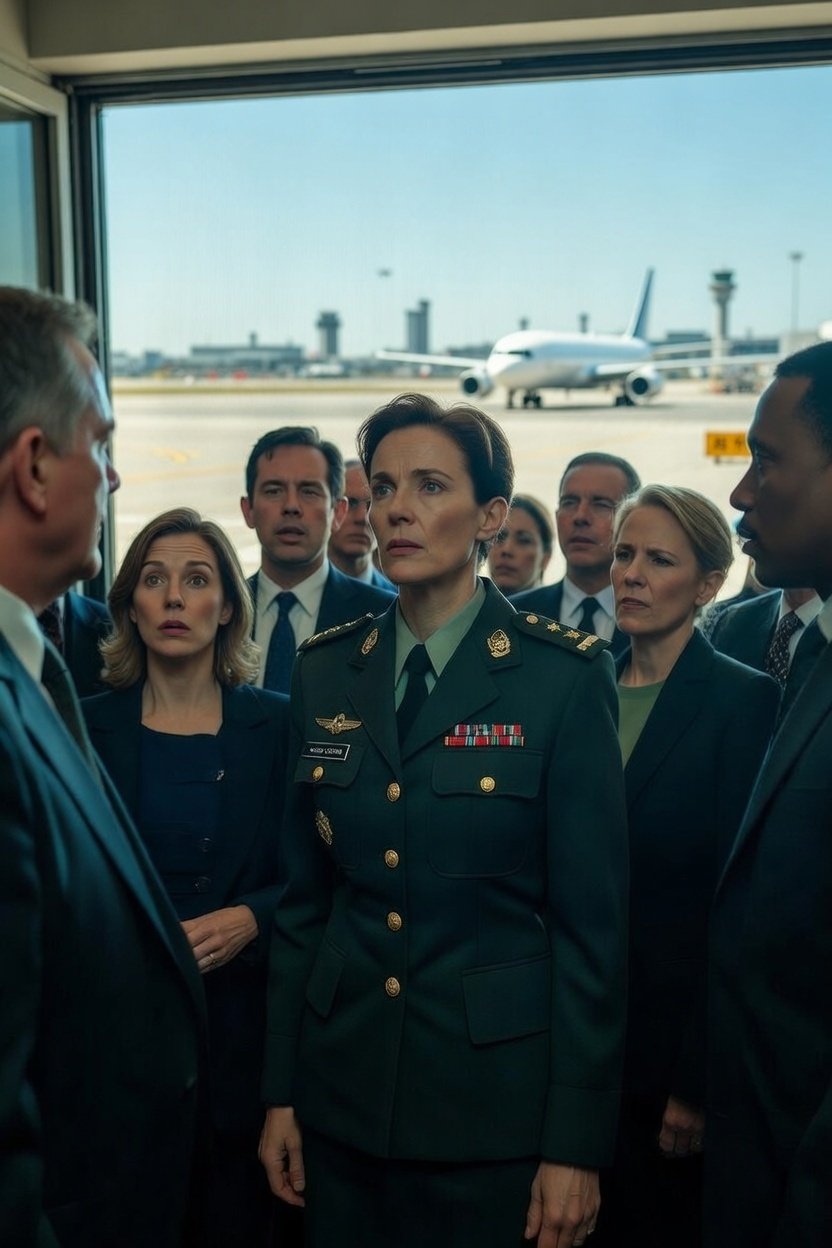 Один из военных — высокий, с сединой на висках, без шлема — снял тёмные очки и оглядел зал. Взгляд остановился на мне.